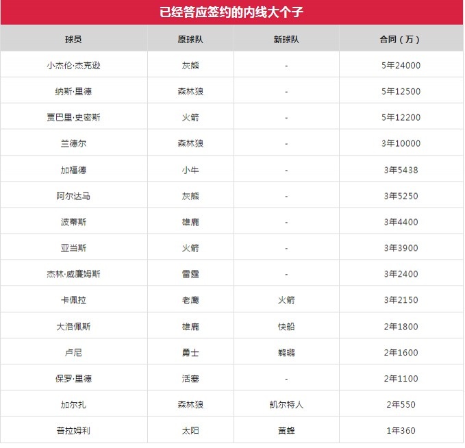 6月30日第五步,4年5300万将芬尼-史密斯抢到手,填补狄龙离去的留下的空缺;同日以3年2150万将卡佩拉签回。