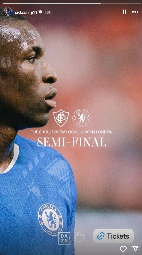 7月8日讯 据《每日电讯报》报道,切尔西球员们一直在通过个人ins账户发布链接,试图提振世俱杯对阵弗鲁米嫩塞队的半决赛门票销售。